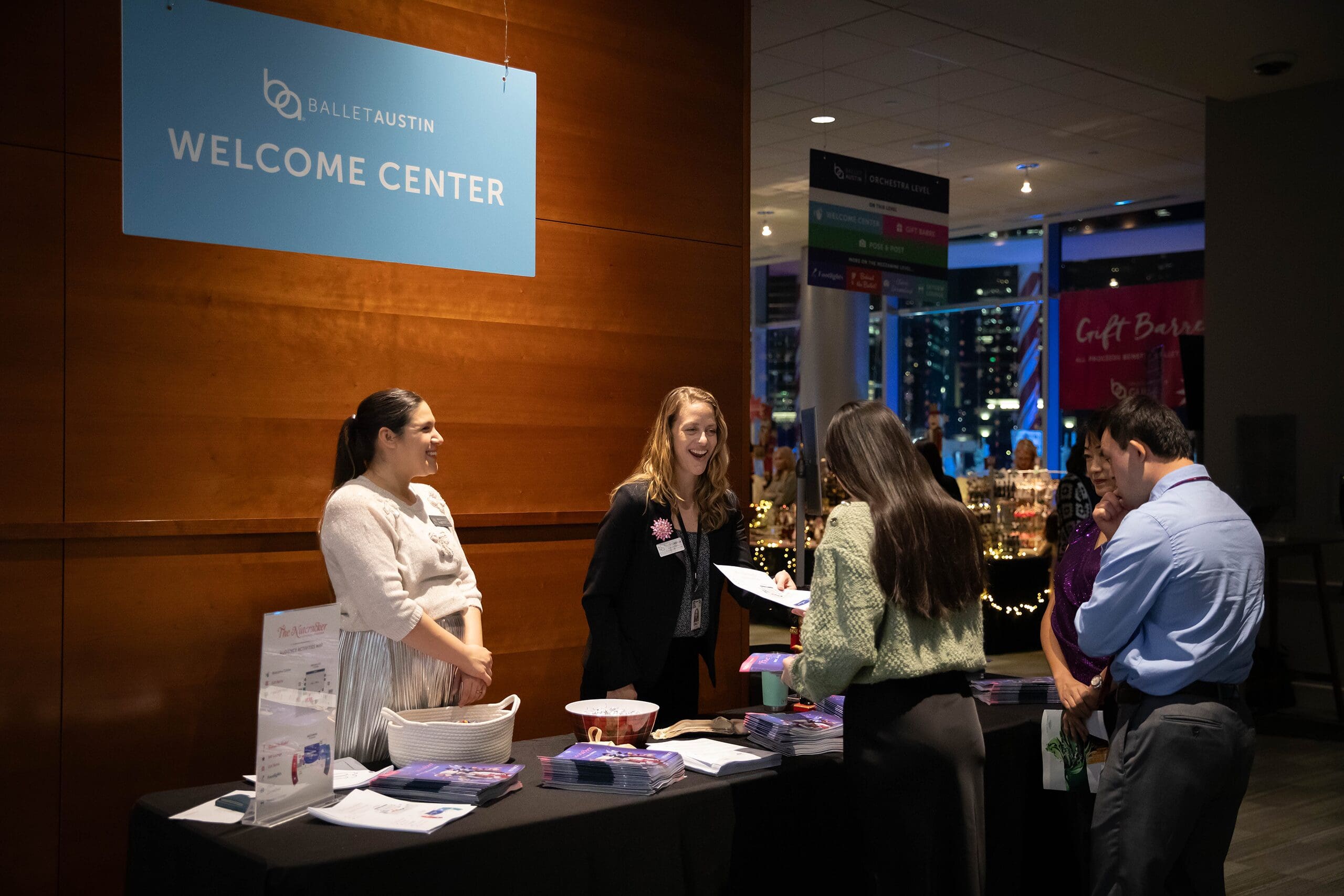 Begin your Nutcracker experience with a little extra sparkle. Stop by the Welcome Center for a warm holiday greeting, insider tips from our team, and a quick guide to all the pre-show fun happening throughout the theater.
