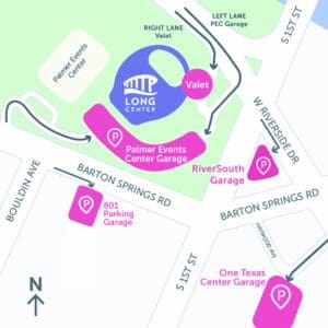 PALMER EVENTS CENTER GARAGE is the Long Center’s primary parking structure, located east of the Long Center.